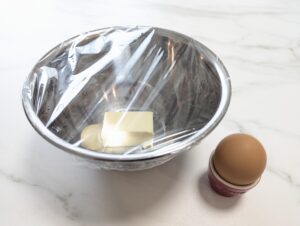 無塩バター50gと卵1個を常温にしておく